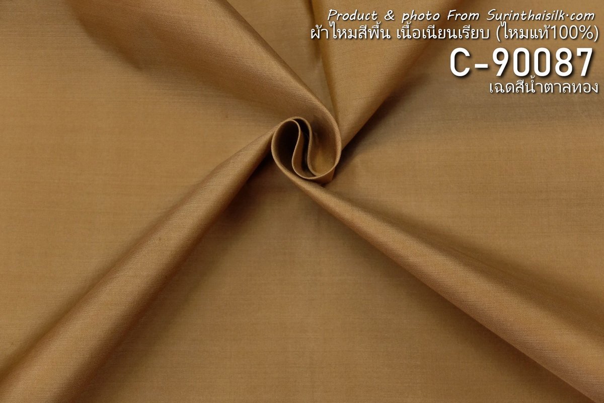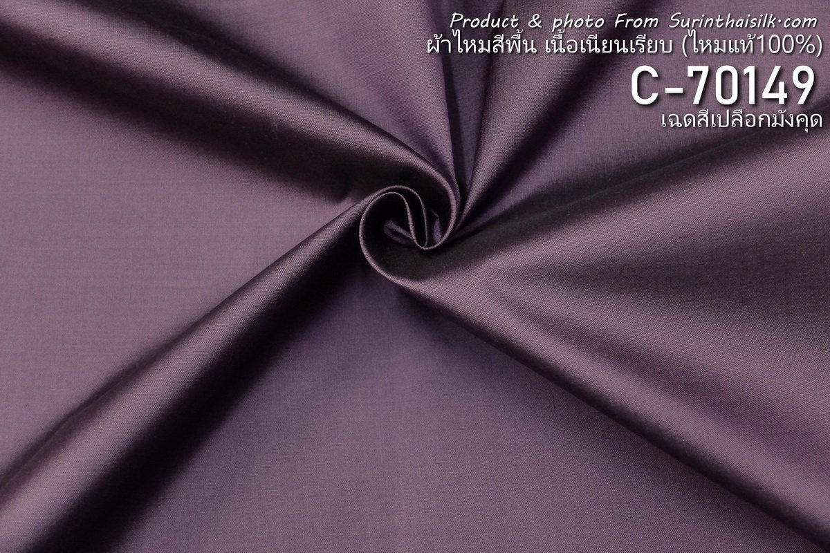 ผ้าไหมสีพื้นเนื้อเรียบมีลักษณะเงางามเนื่องจากทอด้วยไหมเส้นเล็ก