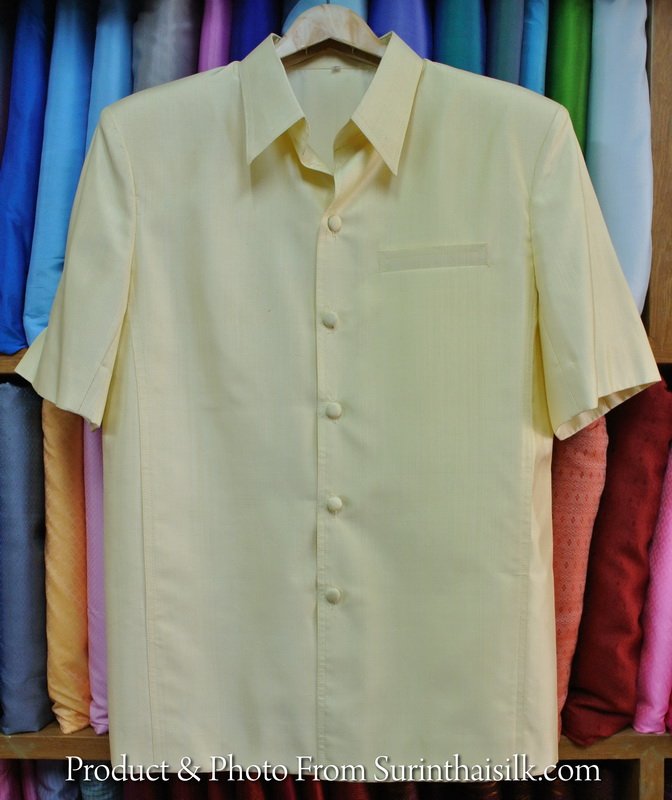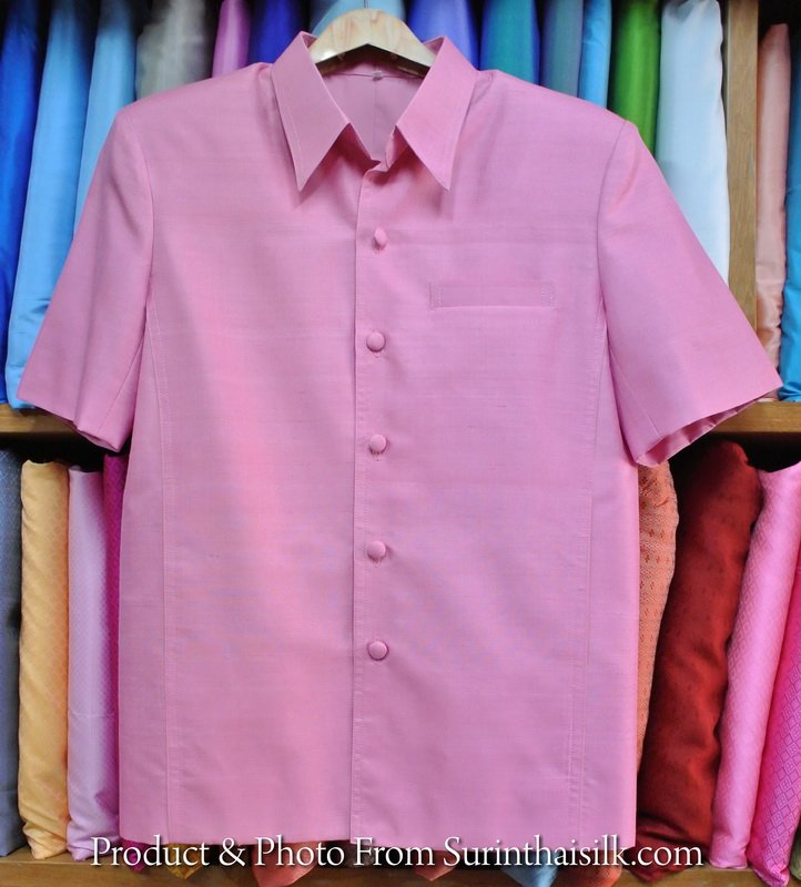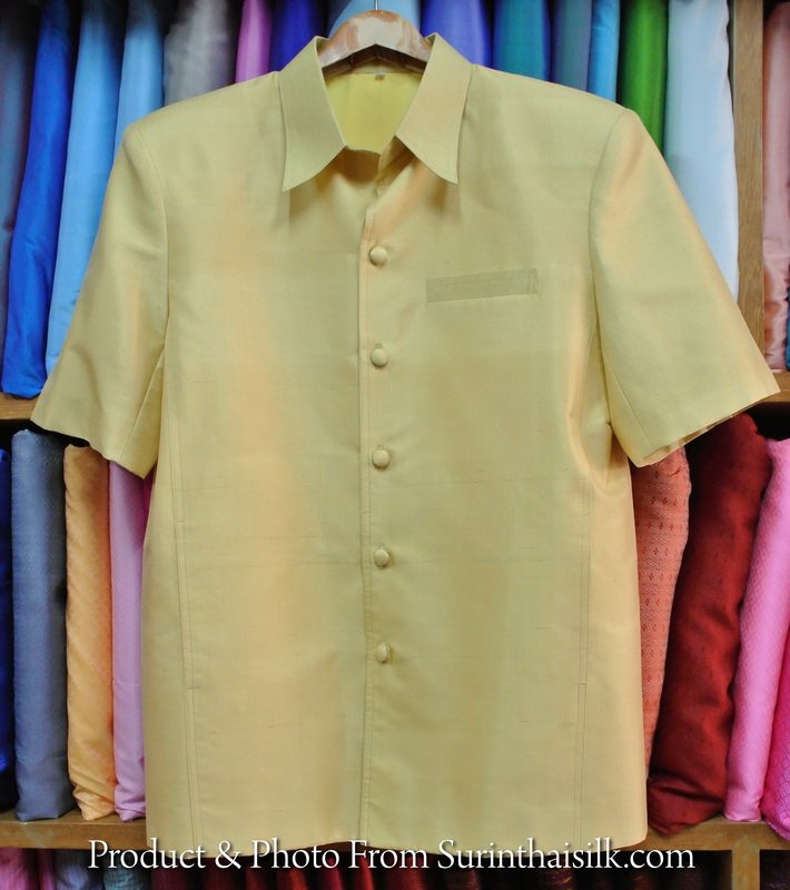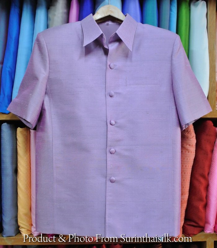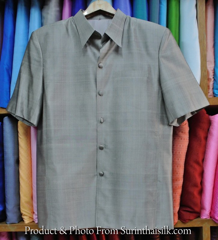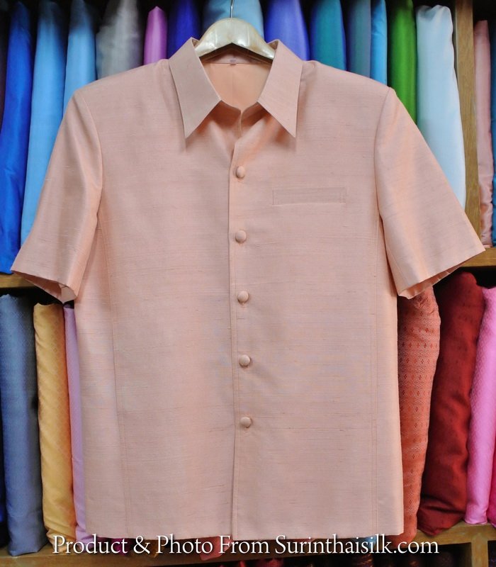 ลักษณะเฉพาะ: เป็นชุดซาฟารีที่ตัดจากผ้าไหมสีพื้นเนื้อเรียบและเนื้อหนาชนิดมีขี้ไหมหลากหลายสี