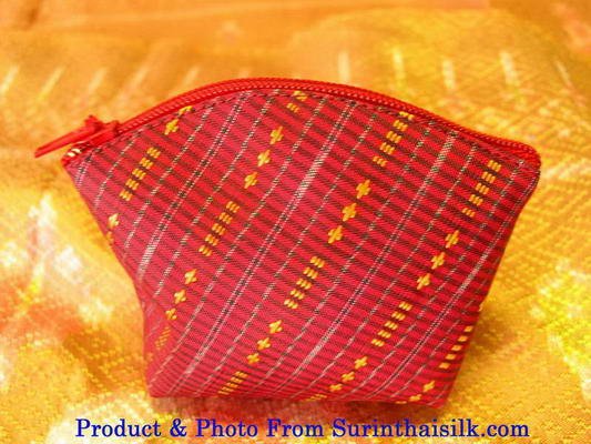 กระเป๋าสตางค์ผ้าไหมทรงพัด