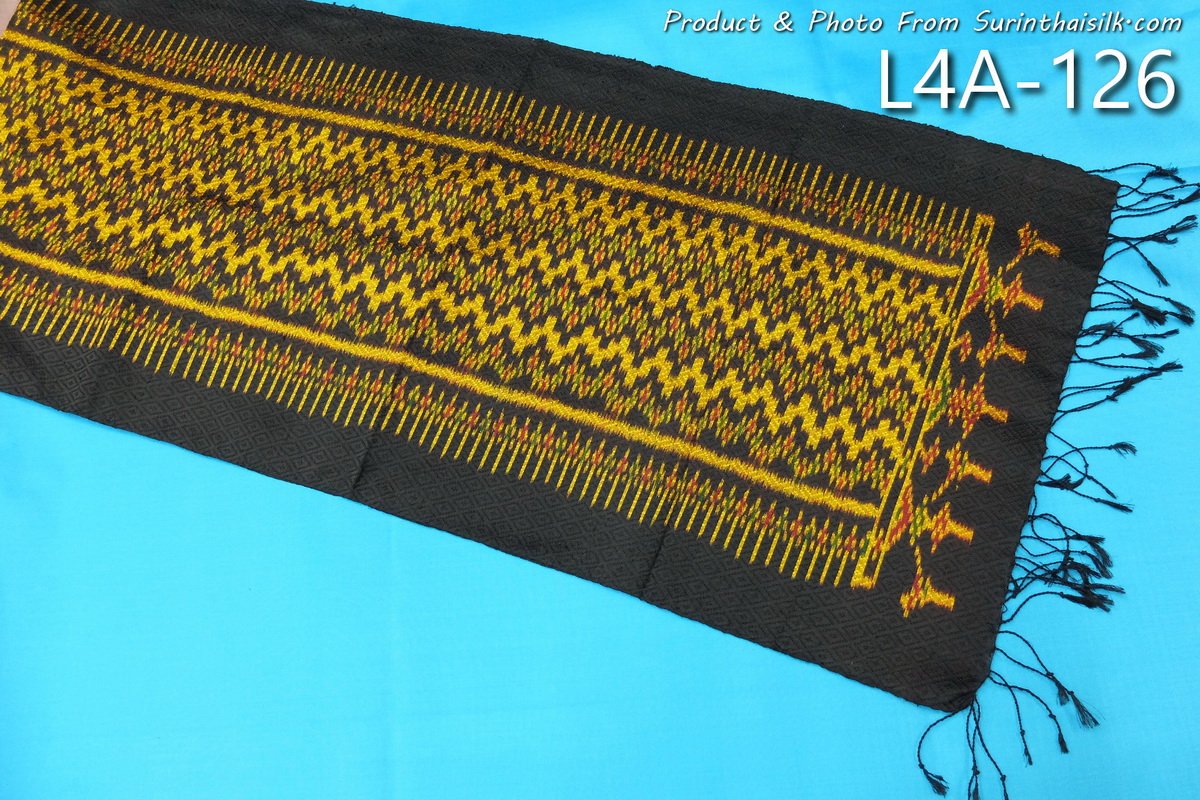ผ้าพันคอไหมยกดอกลูกแก้วมัดหมี่