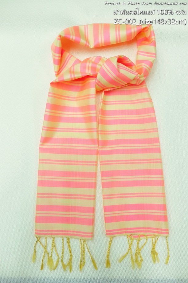 ลักษณะเฉพาะ : ผ้าพันคอไหมลายริ้ว และลายสก็อต ทอจากเส้นไหมแท้