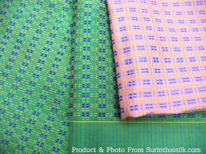 ทอยกดอกเป็นลายสี่เหลี่ยมสลับสีด้วยความปราณีต ทำให้ลายมีความโดดเด่นสวยงาม